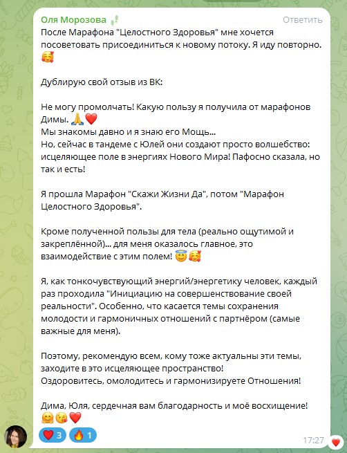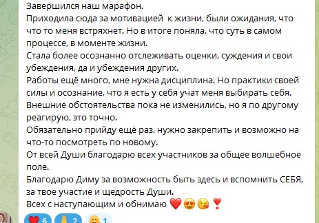 Я делюсь своим опытом и знаниями, как это жить жизнь осознанно и пребывать в гармонии с телом, сознанием и душой. И не время от времени, не в эйфории, а стабильно, уверенно и определённо, где отсутствует даже потребность "выбирать". Есть знание внутри. Вы целостны. И это не передать словами. Это за пределами слов и определений.